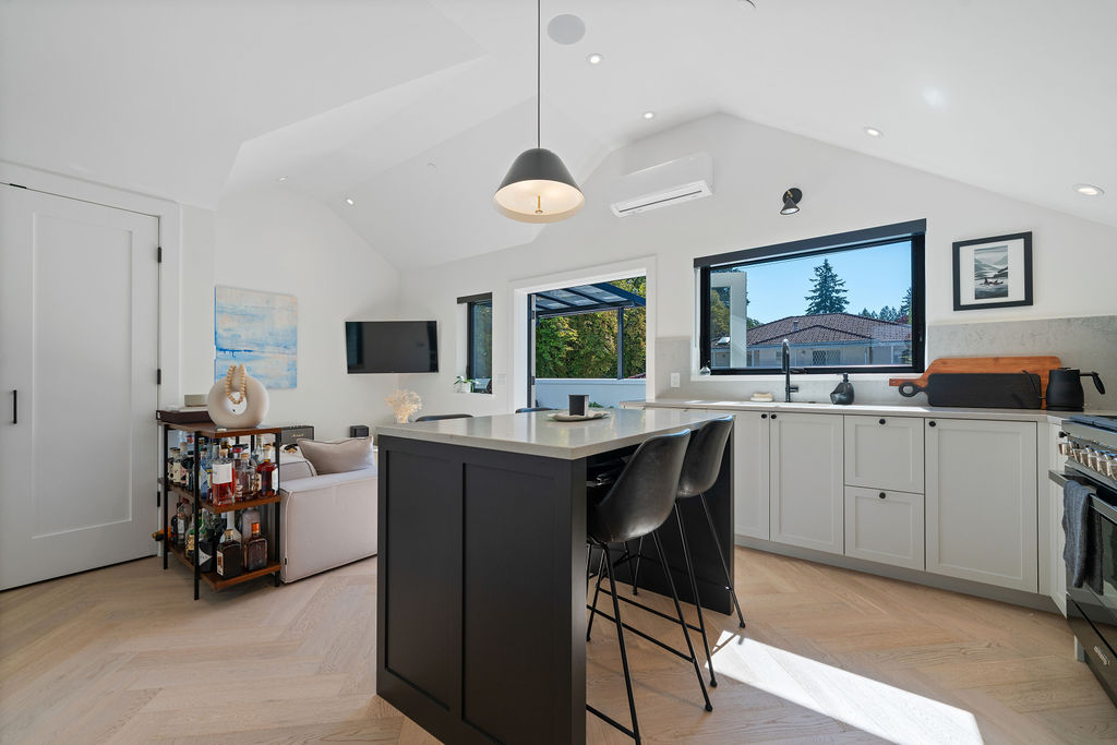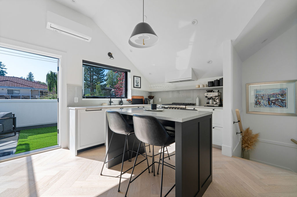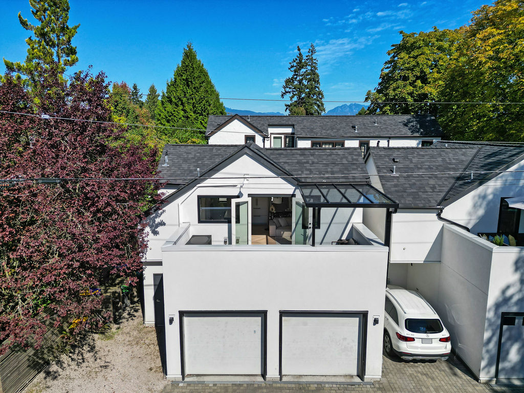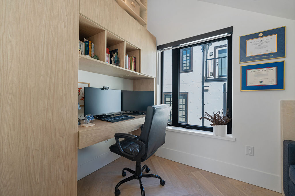Ideally located in the heart of the West Side, this stunning home features 2 level living with a 170 sq ft partially covered south facing patio on the quiet side of this luxurious 6-plex, Oeste 33. Timeless design by award-winning Sophie Burke and architecture by Birmingham & Wood, inspired by the Spanish Revival style. Featuring a spacious primary bedroom, vaulted ceilings, A/C, radiant heat, gourmet kitchen, herringbone white oak hardwood floors, two full spa-like bathrooms, custom built-ins, and a den/jr second bedroom, perfect for a nursery, home office, or guests. Exceptional location, close to Kerrisdale, Kitsilano, top ranked private schools, Arbutus Club, Jericho Tennis Club, and world class golf. Steps to Quilchena Park, great coffee shops, groceries, and restaurants. Enjoy all day natural light, your own front door to the private courtyard, and a lovely outlook over beautiful tree-lined streets. Perfect for first time buyers, downsizers, and those seeking a gorgeous pied-a-terre. Unique, thoughtful, spectacular.